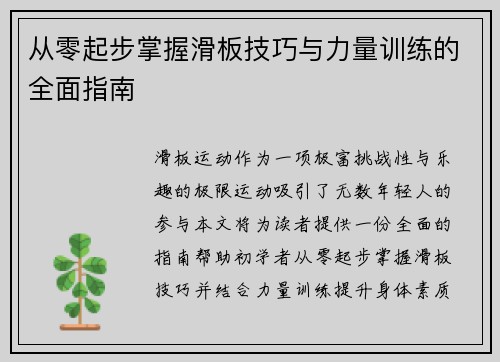 从零起步掌握滑板技巧与力量训练的全面指南