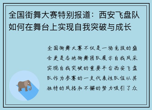 全国街舞大赛特别报道:西安飞盘队如何在舞台上实现自我突破与成长
